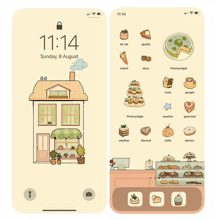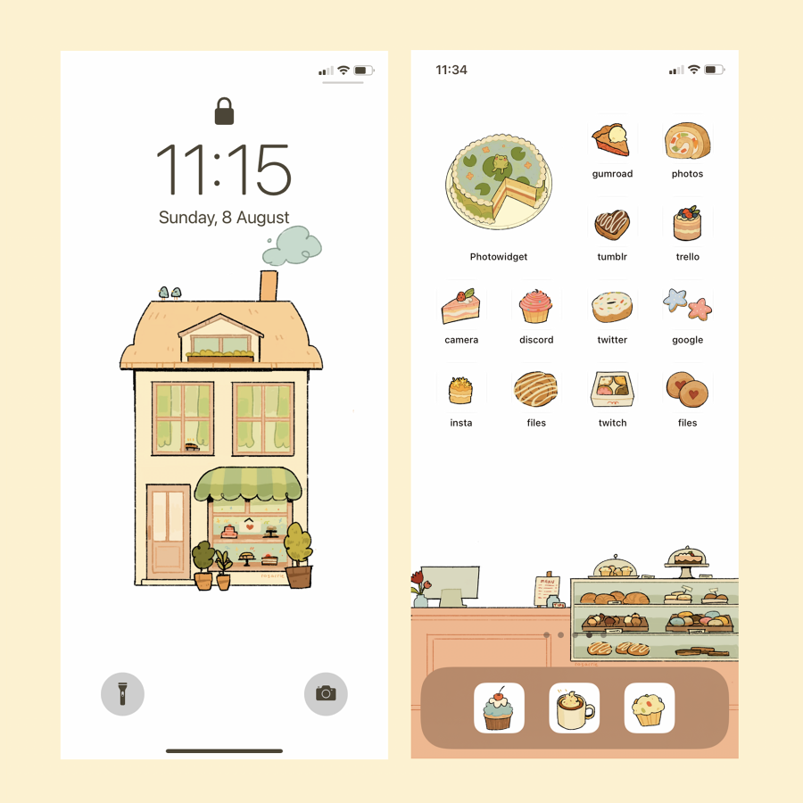 3 wallpapers + 32 bakery icons + 3 widgets (with white/beige variants)
