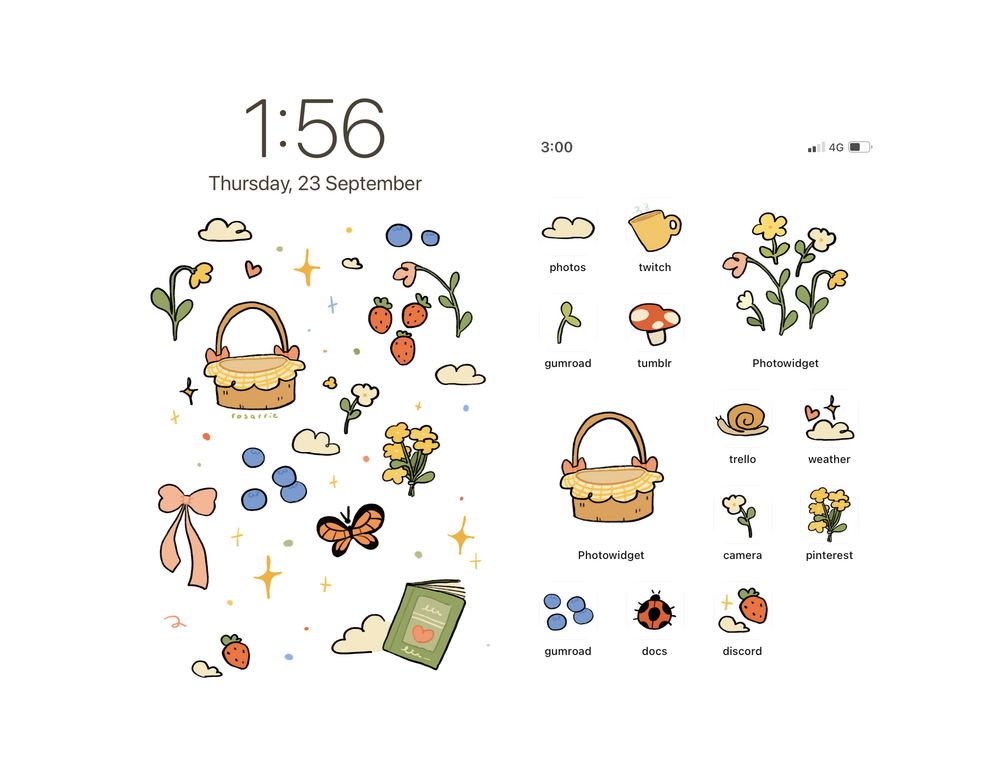 a cottagecore-themed icon pack full of cute designs ππ±